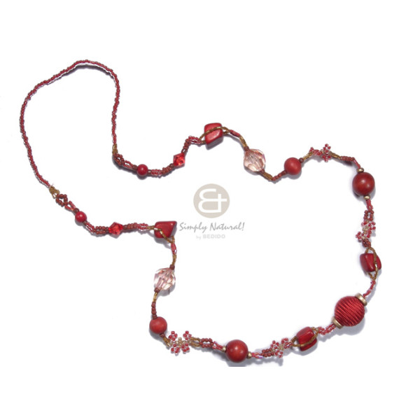 8 rows dark brown agsam bamboo red glass beads combination and 45mm flower kabibe pendant..