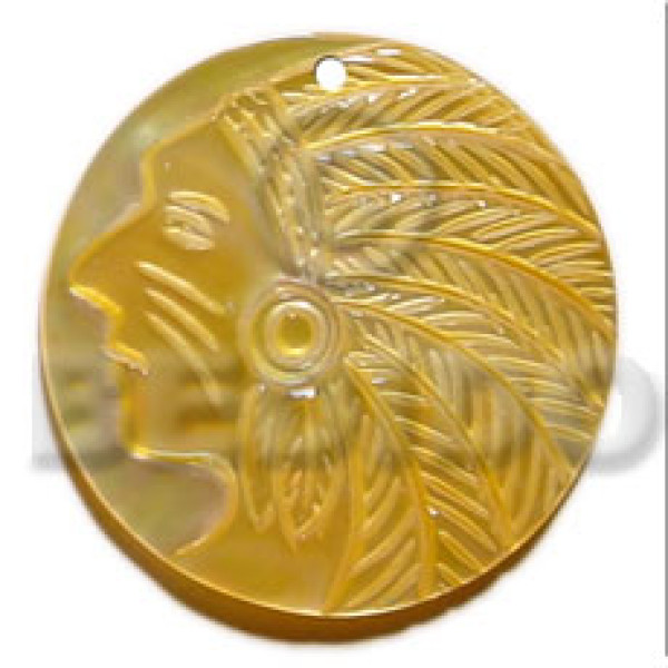 round MOP indian face carving 50mmx40mm..