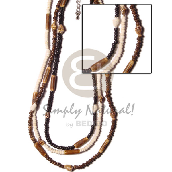 3 rows 2-3mm coco heishe natural coco chips, wood beads accent & tassles..