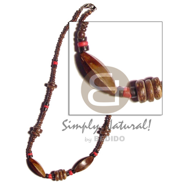 2-3 coco heishe brown nat. brown coco half moon and red corals/pearl beads..