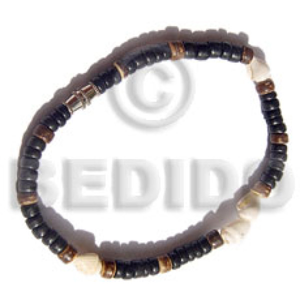 2-3mm coco Pokalet. black hoop wire bracelet/adjustable shell & buri beads..