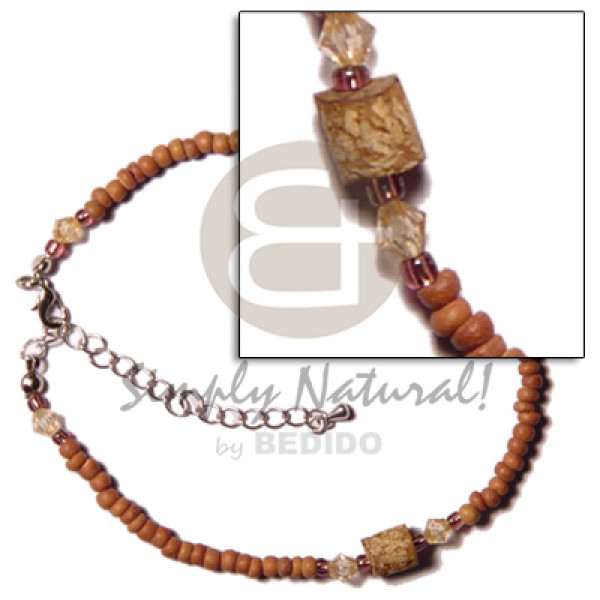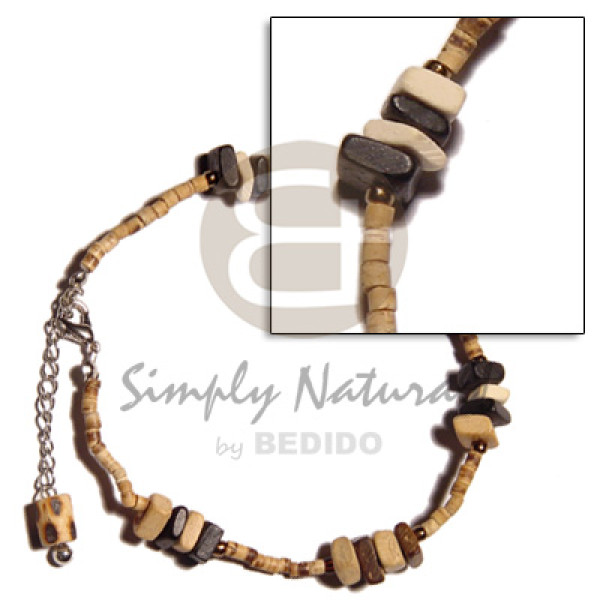 2-3 coco heishe natural coco square cut & dangling tube wood burning..