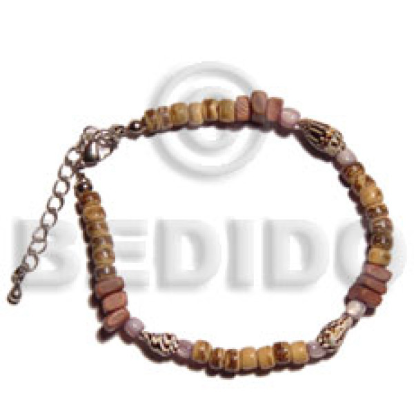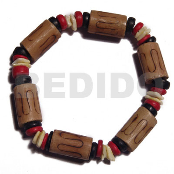 2 rows sig-id wood tube red/lavender/tiger 2-3mm coco pokalet flower..
