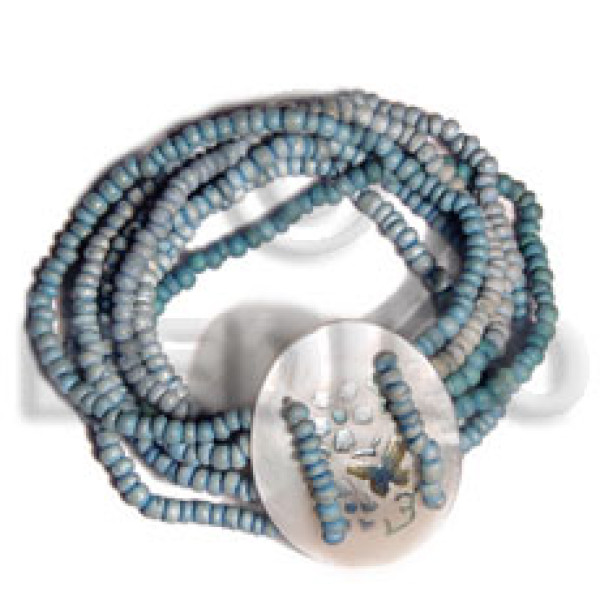 5 layers elastic 2-3mm aqua blue coco Pokalet. 40mmx35mm oval handpainted hammershell..