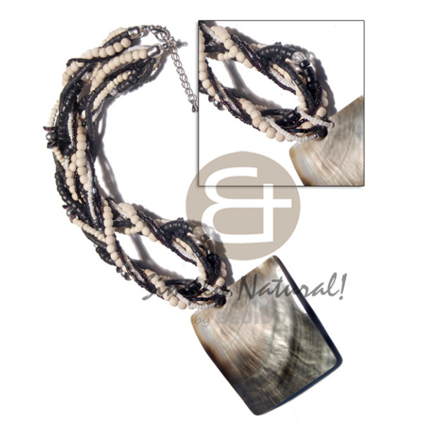 4-5mm nat brown coco Pokalet oval amber horn beads accent 60mm round blacklip pendant in 2 rows 4-..