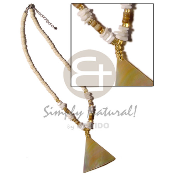 4-5mm coco Pokalet. bleach shell accent and triangle 45mmx30mm MOP pendant..