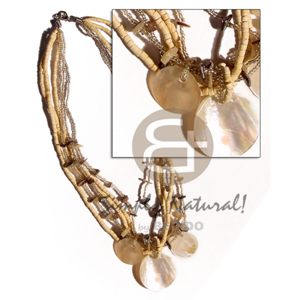 6 layers 2-3mm coco heishe,glass beads & shell chips two 35mm & one 35mm round hammershell..