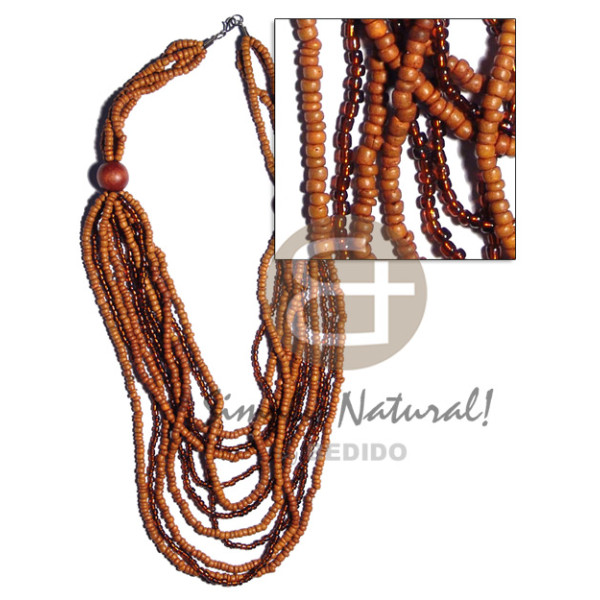 6 rows 2-3mm nat. brown coco heishe asstd. looped bayong and palmwood beads / 16in..