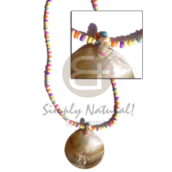candy colored 2-3mm coco pokalet 30mm round brown lip pendant..