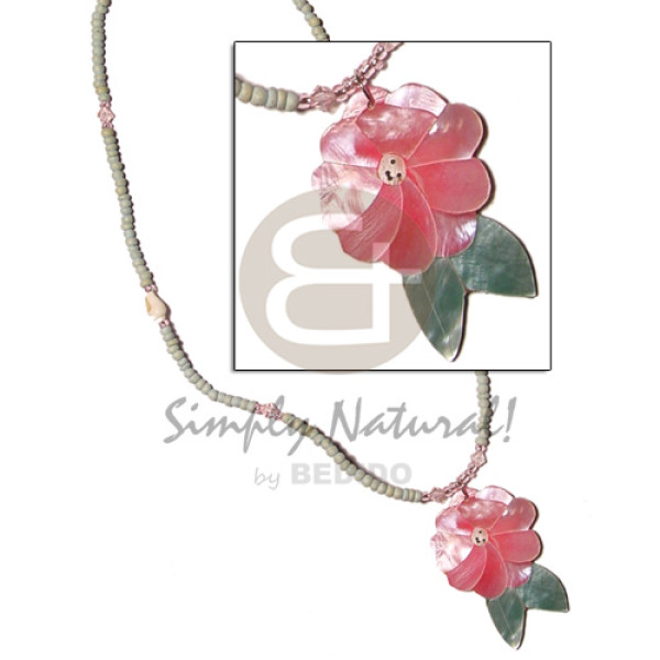 pink 2-3mm coco heishe wire choker buri & troca beads accent 45mm pink hammershell flower pendant..