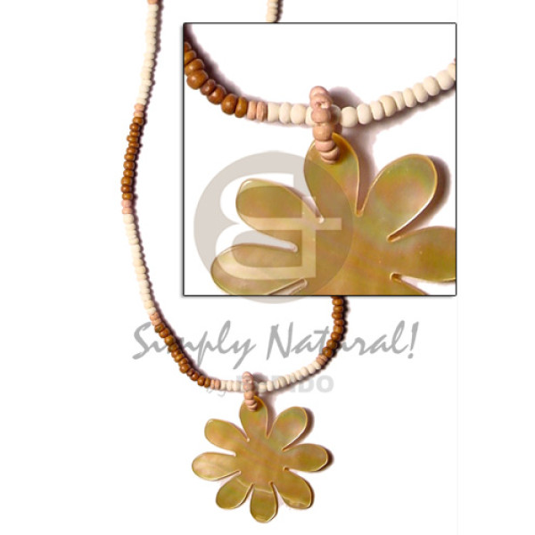2-3mm coco heishe nat. /2-3 coco pokalet brown alt. coco two face pyramid pendant..