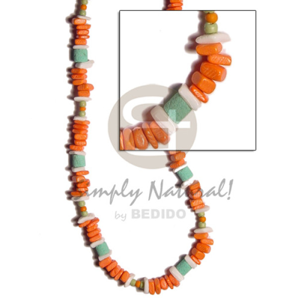 3 rows 2-3mm coco Pokalet. yelloorange /green coco sticks,wood beads & 40mm handpainted hammershell..