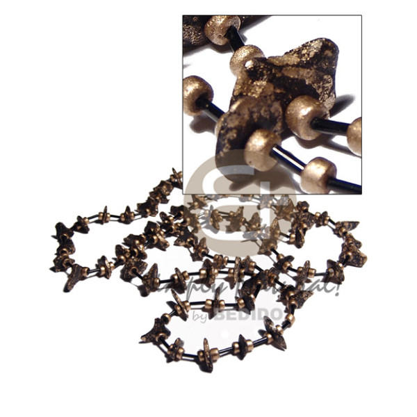 4-5mm coco Pokalet & cut beads black coco chips gold metallic splashing / 36 in...