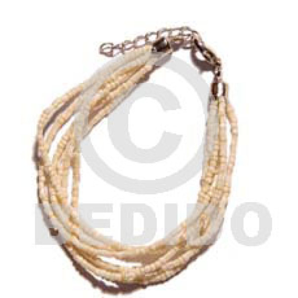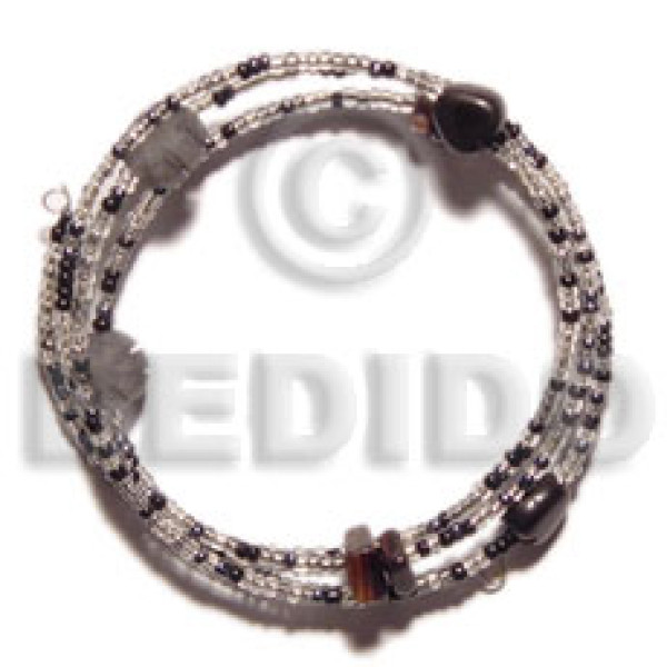 glass beads in hoop wire bracelet/adjustable shell & buri beads..