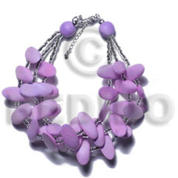 3 rows lavender slidecut wood beads glass beads combination..