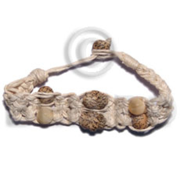 7-8mm coco Pokalet and mahogany cylinder beads combination in macrame brown/beige wax cord..