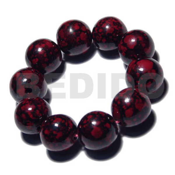 10 pcs. of 20mm round wood beads in black high polished paint gloss color red/marbleized / elastic ..