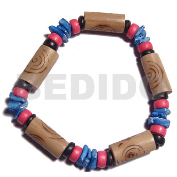 bamboo tubes burning blue white rose shell, reddish pink/black 7-8mm coco Pokalet combination / el..