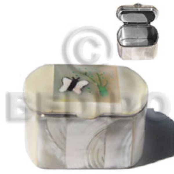 stainless square metal casing inlaid troca shell / twin dolphin design from asstd. shells..