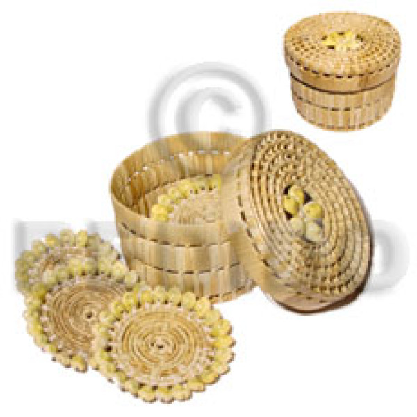 abaca placemats matching coasters, cloth table napkins, cowrie shell napkin holders / set of 6..