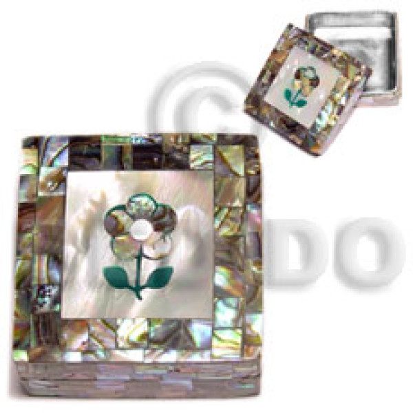 stainless square metal casing inlaid blocking paua abalone shell,troca / flower design from asstd. ..