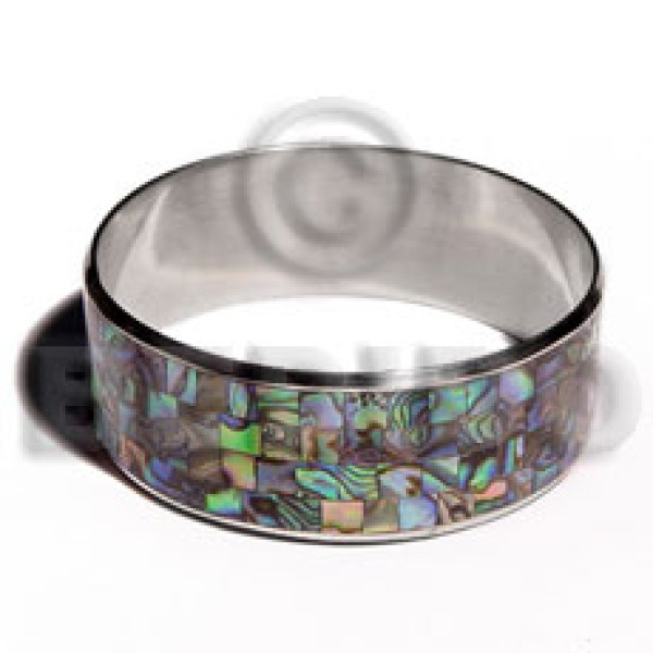 laminated inlaid mosaic paua in 1 inch stainless metal / 65mm in diameter..