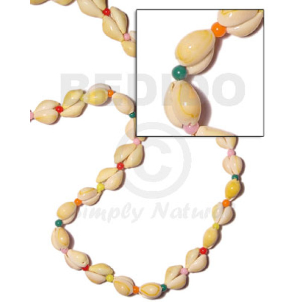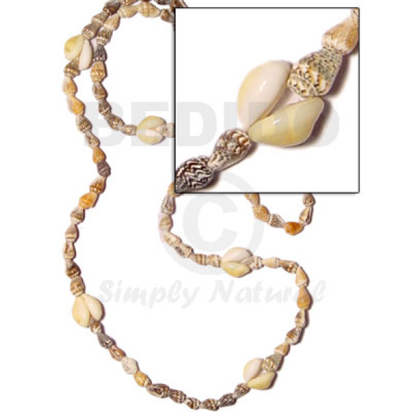 lei / kukui seeds and nat. wood beads in lavender combination nassa shells / 32 in..