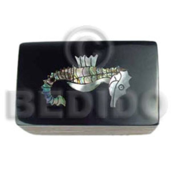 wooden jewelry box inlaid seahorse design/black top/medium..