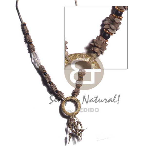 2-3mm coco heishe nat. brown resin nugget, hammershell sq. cut and 12mm round bayong wood beads com..