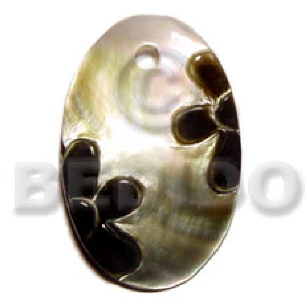 32mmx18mm blacklip shell inlaid metal and resin backing in wax cord and troca shell accenti..