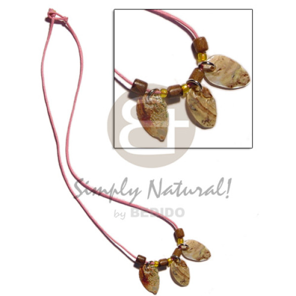 nat. white wood tube mahogany,4-5mm coco Pokalet. nat brown and white clam combination..