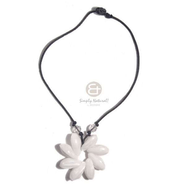 35mmx25mm kabibe shell fang pendant in black macrame white rose shell & tube nat. white wood accent..