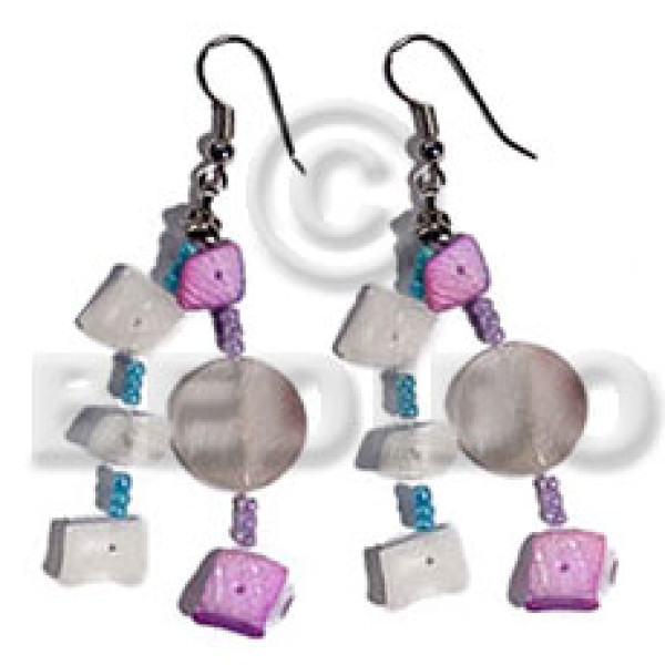 dangling double round 25mm gree/blue capiz shell 15mm capiz lavender flower..