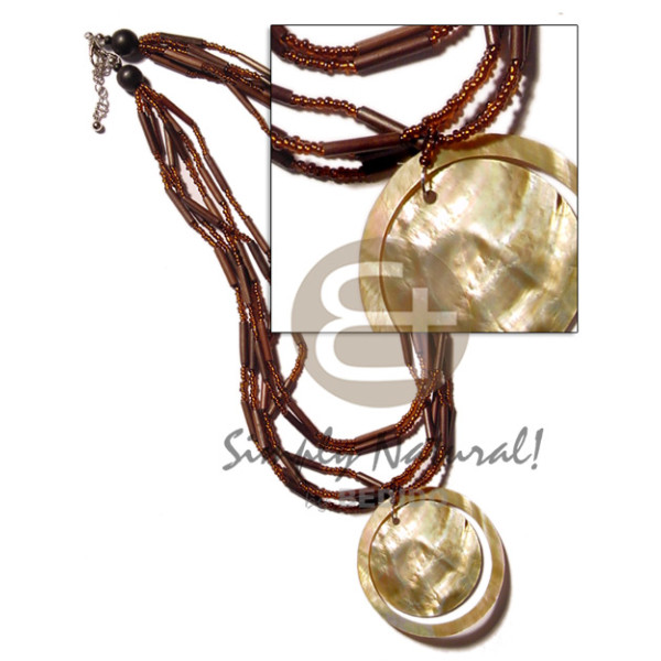 8 rows dark brown agsam bamboo red glass beads combination and 45mm flower kabibe pendant..