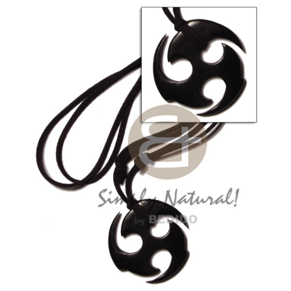 45mm black celtic carabao horn disc on adjustable leather thong..
