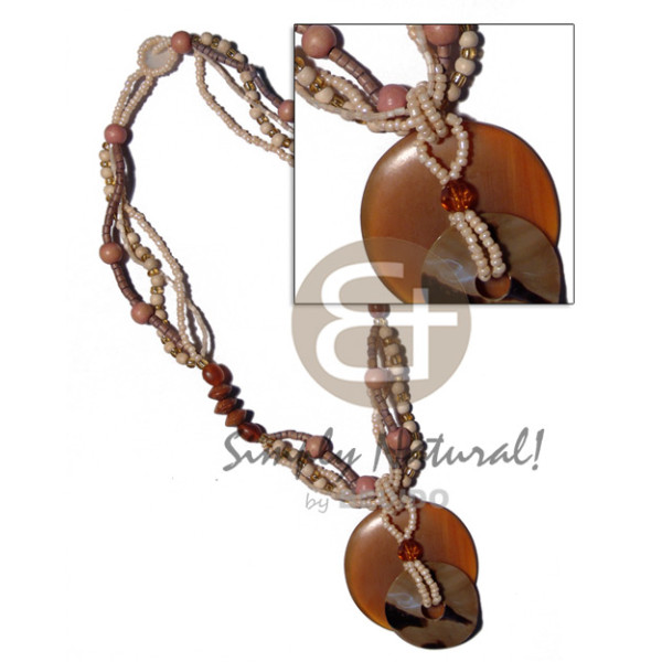 50mm round amber horn & 35mm round brownlip tiger in 4 rows wo0d beads/glass beads/4-5mm coco pokal..