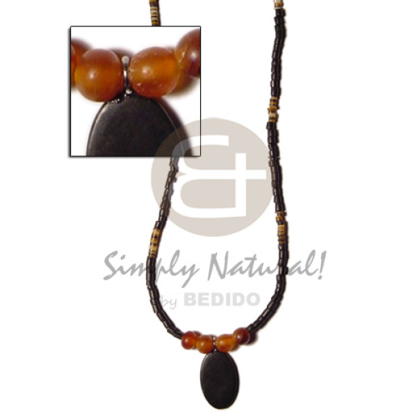 2-3mm coco heishe black / 4-5mm brown lip alt./black horn flat oval pendant horn amber beads..