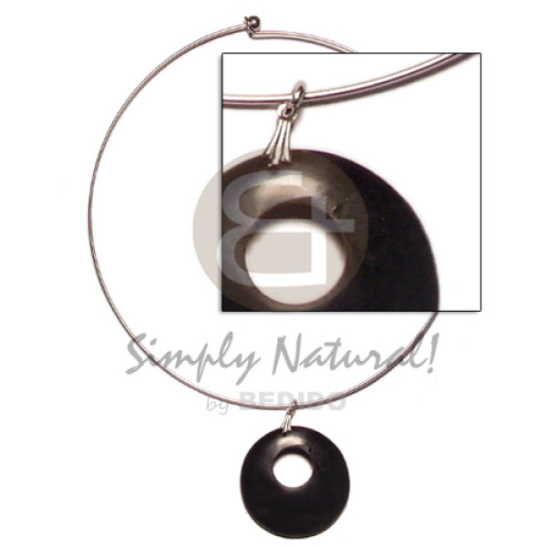 nickel-free silver hoop ring 40mm black horn round middle hole..