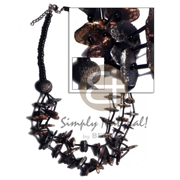 graduated 3 layers 4-5mm coco Pokalet & cut beads black coco chips in 2 metallic splashing tones - ..