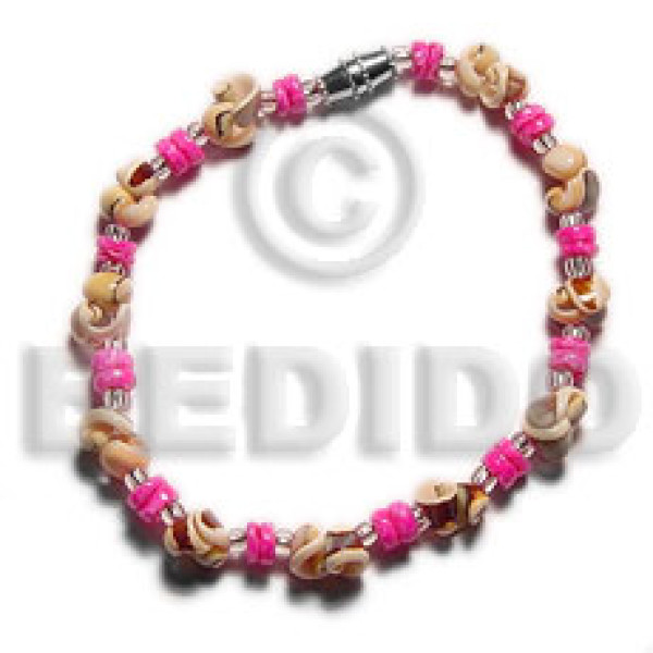 4 pcs. zebra kukui nut buri tiger seeds, white rose, metallic wood beads combination in endless met..