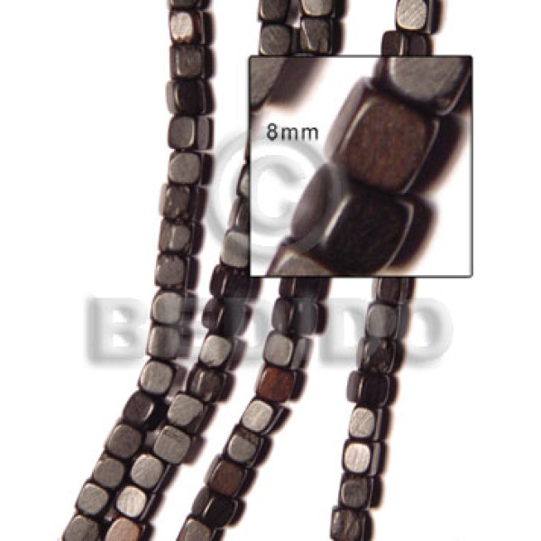 20mm round wrapped wood beads, black kukui nuts and wood beads combination in black wax cord..