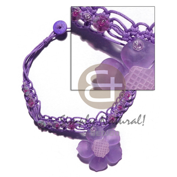 lilac wax cord macrame choker 40mm hammershell flower groove nectar..