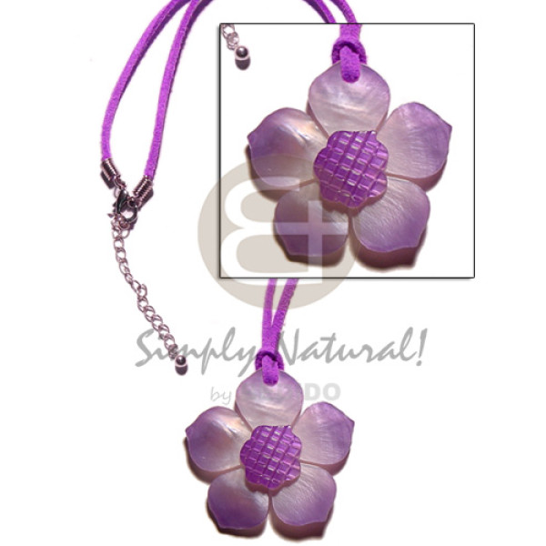 graduated lilac tones hammershell flower pendant in lilac wax cord..