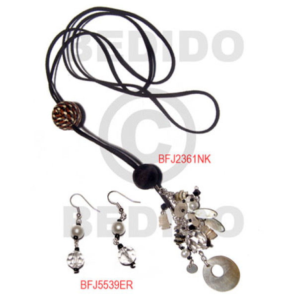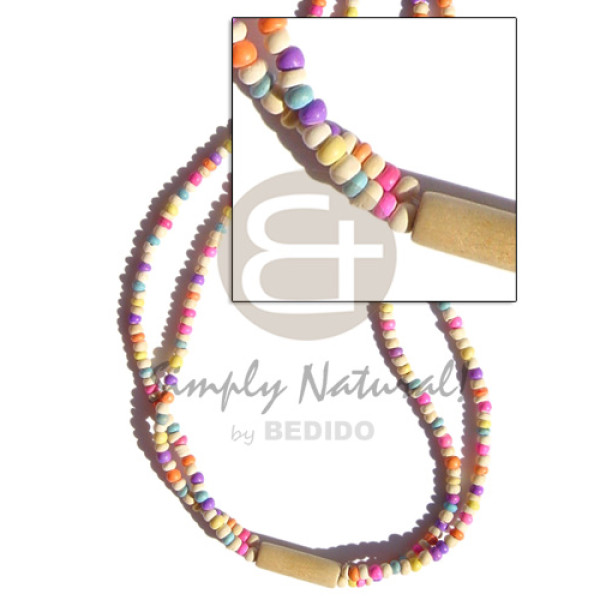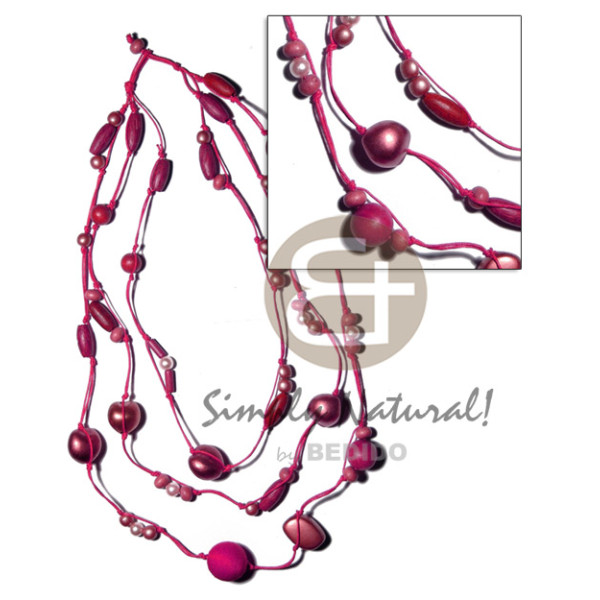 3 rows 16" 17" 18" wax cord asstd. wood beads, pearl, wrapped wood bead, pearlized kukui nuts in fu..