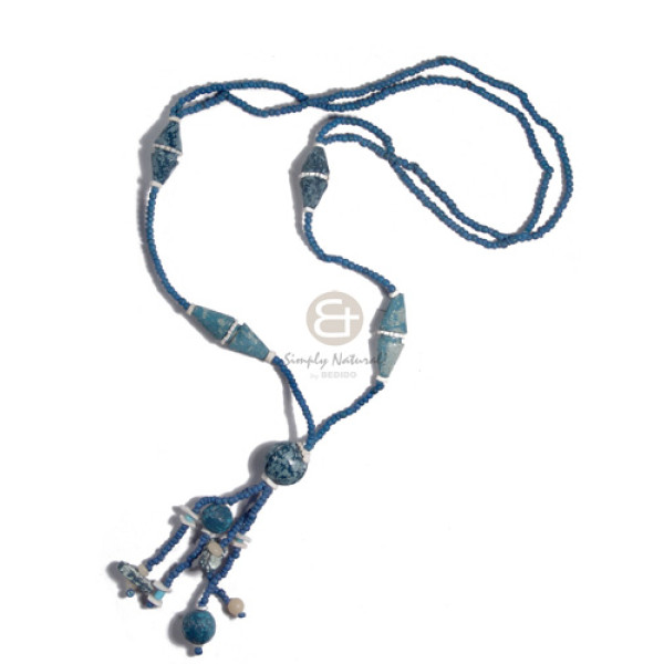5 rows graduated multilayered cut glass beads buri seeds and wood beads accent/aquamarine tones ..