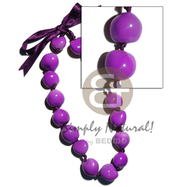 painted graduated kukui nuts / bright lavender ( 16 pcs. ) / adjustable ribbon..