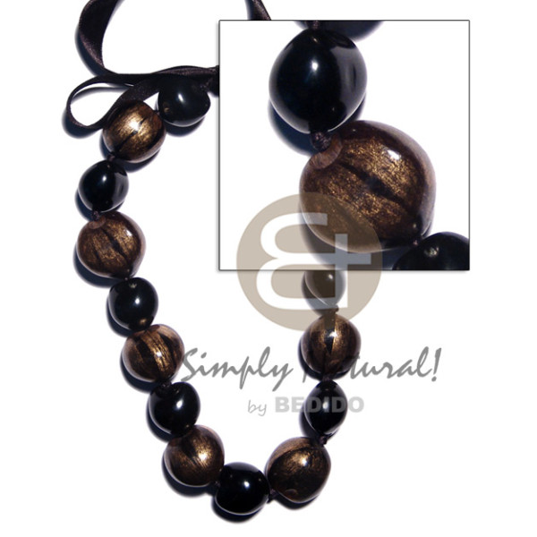 black kukui nuts alternate kukui in tiger marble ( 16 pcs. ) / adjustable ribbon..