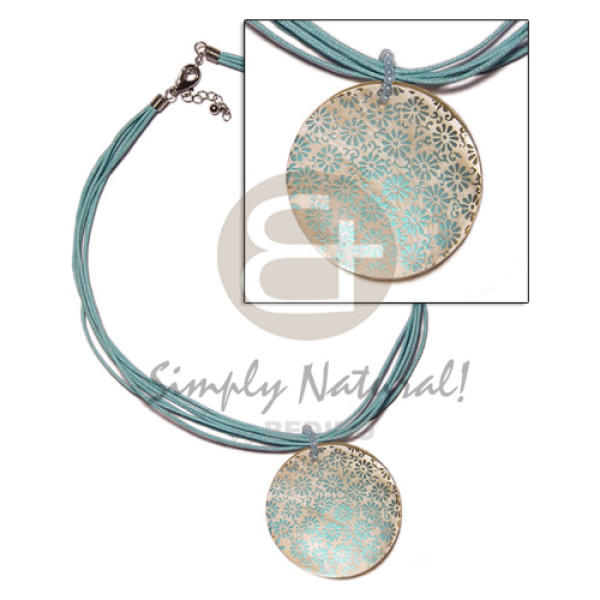 6 layer aqua blue wax cord matching 40mm roundhandpainted hammershell pendant..