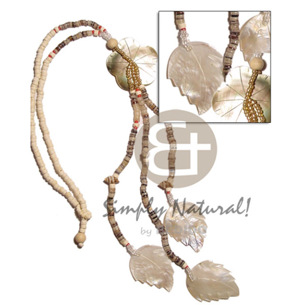 nassa tiger sq. cut brownlip, 2-3mm coco Pokalet. bleach & glass beads combination..