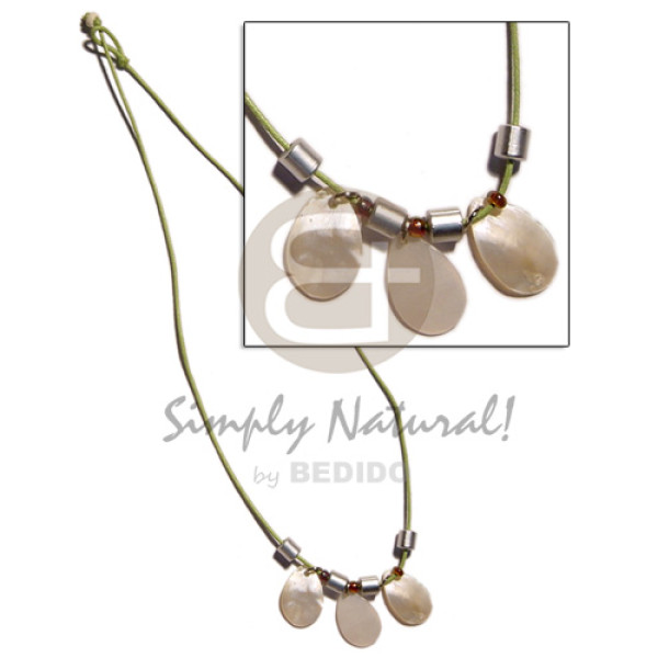 3 pc. 15mm teardrop hammershell silver wood beads in wax cord..